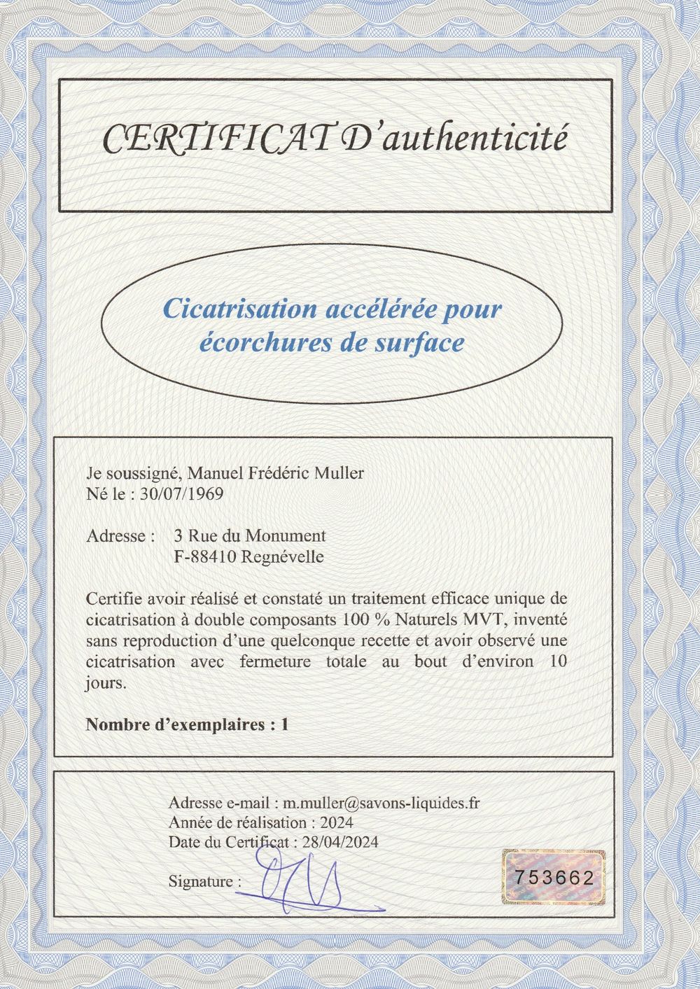 Produits de cicatrisation à double composants 100 % Naturels (Une pommade et un spray nettoyant-hydratant).